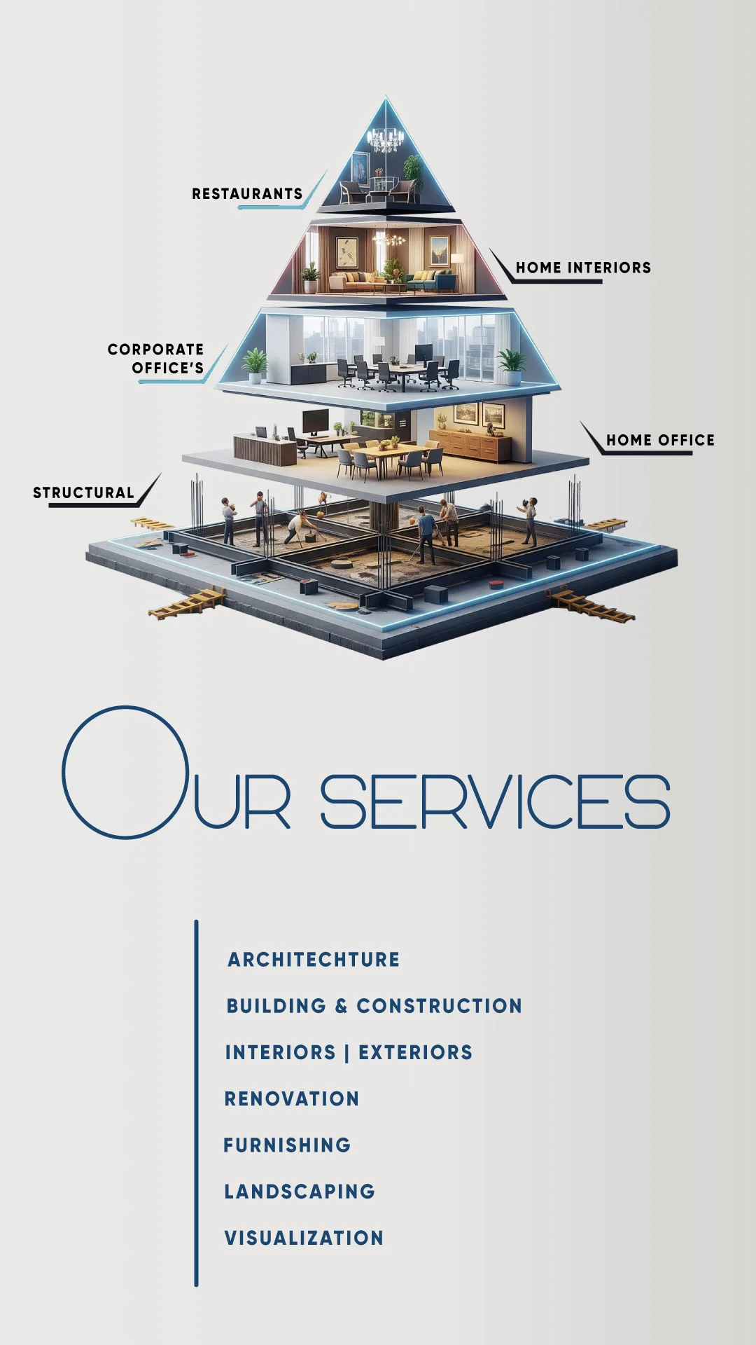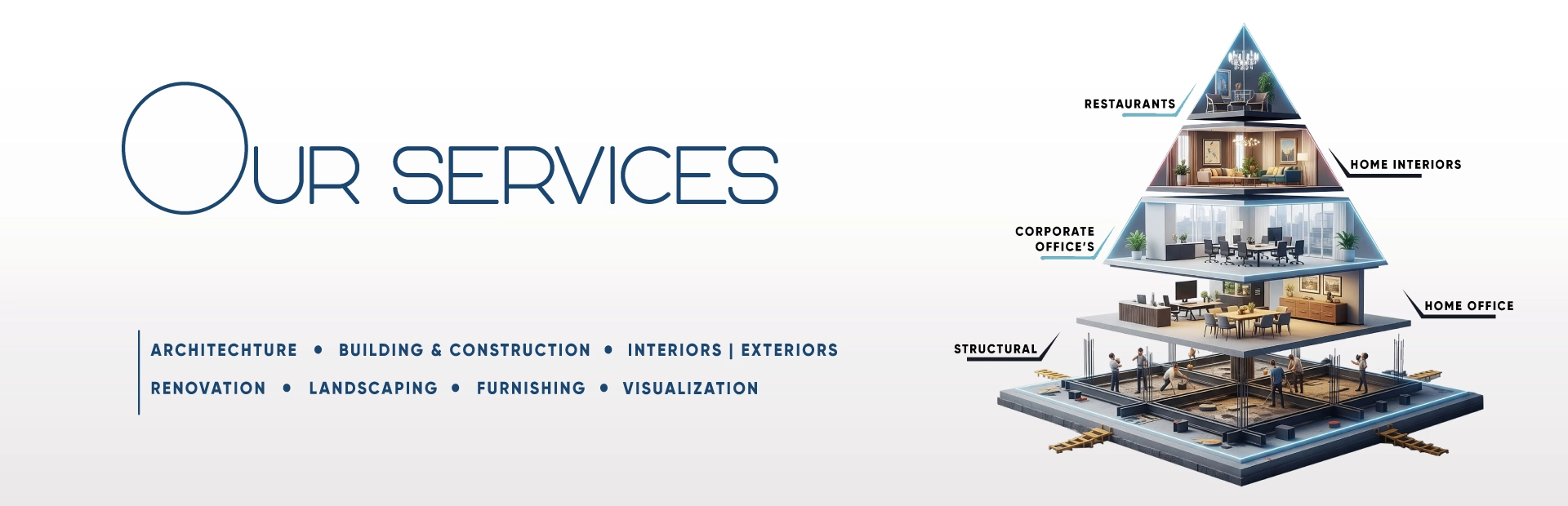 Architecture Building & Construction Renovation Interiors & Exteriors Landscaping Furnishing Visualization Architecture Building & Construction Interiors & Exteriors Renovation Landscaping Furnishing Visualization Our Process Our Process